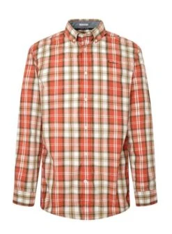 Chemise Pepe Jeans. Coupe slim. Manches longues. Col boutonné. Imprimé à carreaux orange. Logo brodé sur la poitrine. Le modèle porte la taille M.