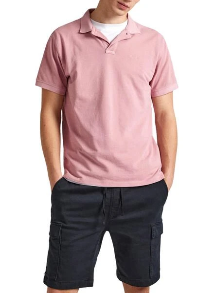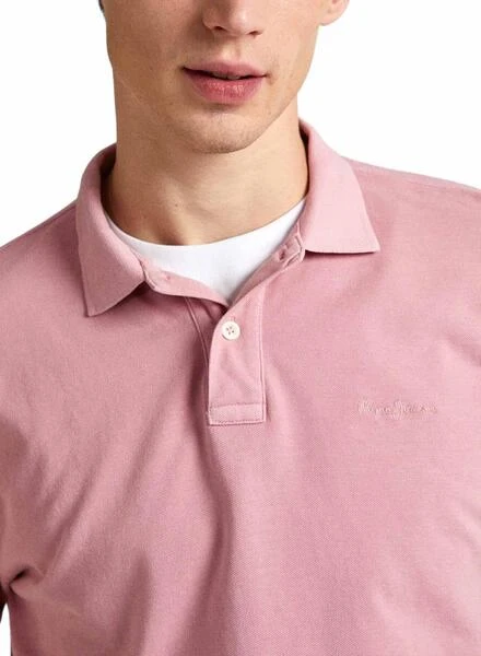 Chemise Pepe Jeans. Couleur rose. Col avec deux boutons. Logo brodé assorti sur la poitrine. Manches courtes. Coupe régulière. Le mannequin porte la taille M.