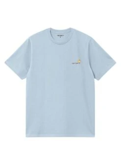 T-shirt Carhartt. ModÚle Script. Couleur bleu clair. Col rond. Logo brodé sur la poitrine. Coupe ample. Manches courtes.