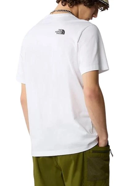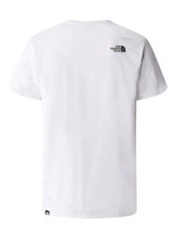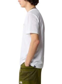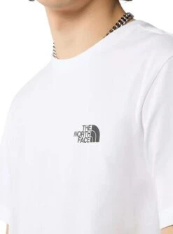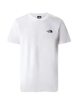 T-shirt The North Face. Modèle Simple Dome. Couleur blanche. Manches courtes. Col rond élastique. Coupe régulière. Tissu en coton élastique. Logo sur la poitrine et le dos. Le modèle porte la taille M.