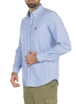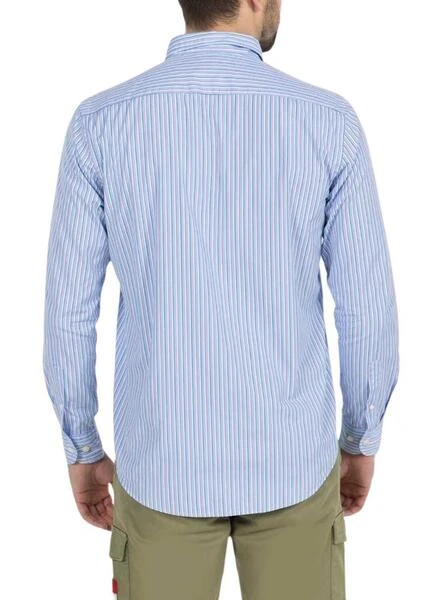 Chemise El Pulpo. Modèle à rayures combinées. Couleur bleue. Manches longues. Fermeture boutonnée. Rayures imprimées. Logo de la marque brodé sur la poitrine. Coupe ajustée.