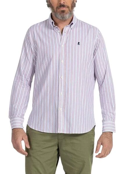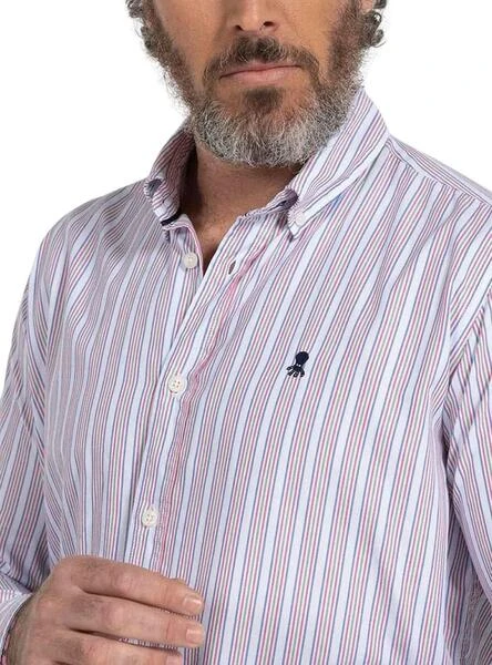 Chemise El Pulpo. Bande Couleur. Couleur blanc. Manche longue. Poignets boutonnés. Fermeture principale avec boutons. Broderie Logo. Ourlet arrondi. Printed de Rayures.