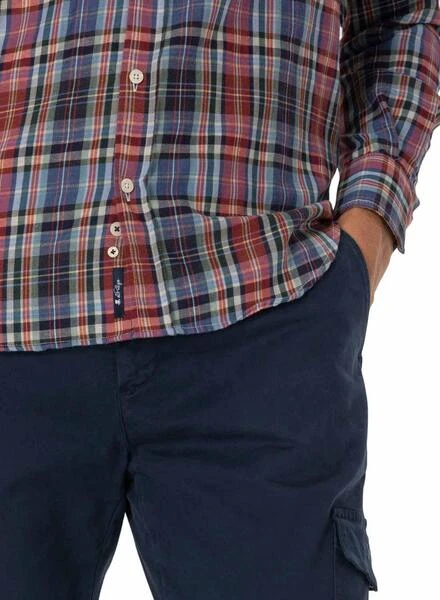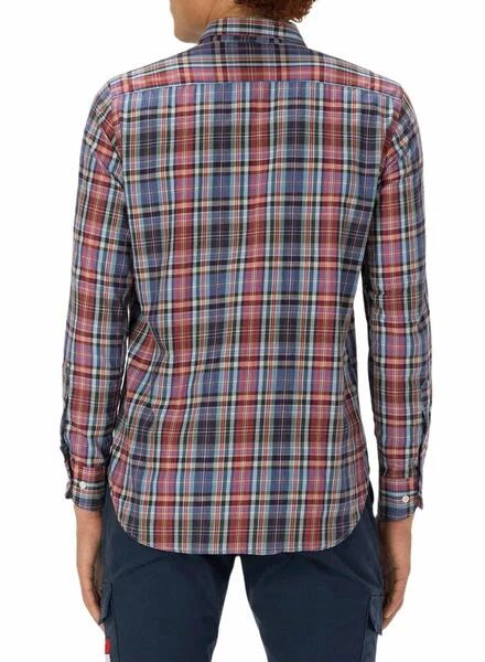 Chemise El Pulpo. Printed de trames. Couleur rouge, marine et blanc. Fond arrondi. Fermeture à lacets. coq américain Poignets boutonnés. Modèle maxi.