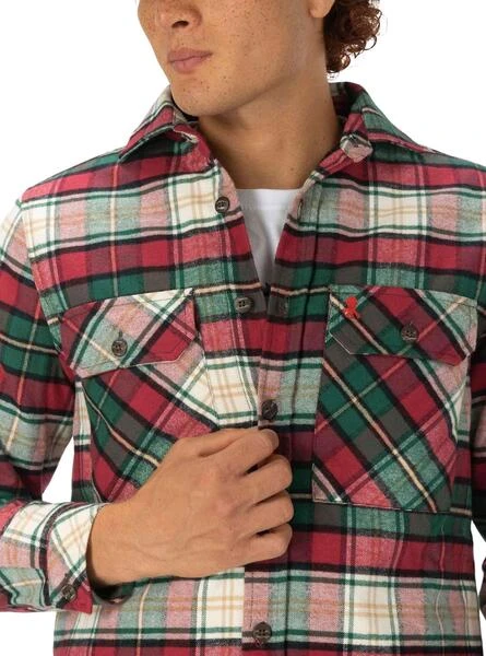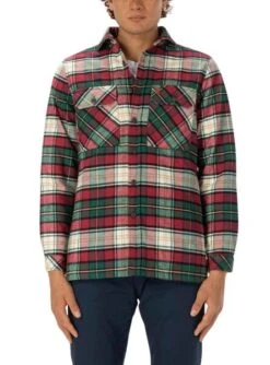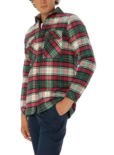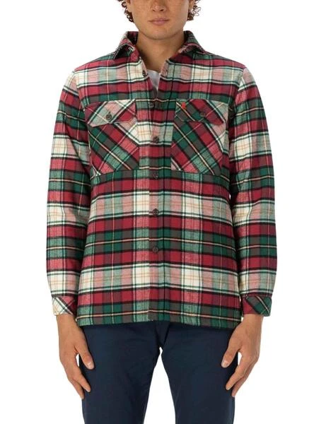 Chemise El Pulpo. Couleur rouge, blanc, vert et beige. Damier Printed. Tissu flanelle. Fermeture boutonnée. Poches avec rabat de poitrine. Basse droite.