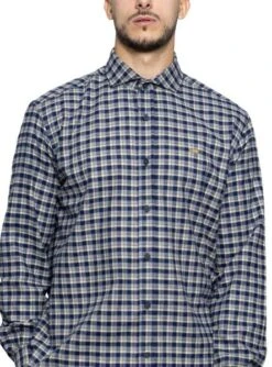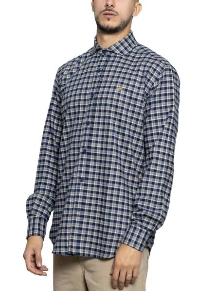 Chemise Klout. ModÚle London. Couleur bleu. Fermeture boutonnée. Logo brodé sur la poitrine. Ourlet arrondi. Tissu texturé doux de type flanelle.