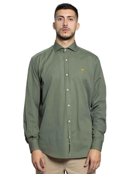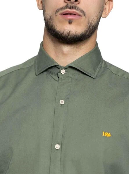 Chemise Klout. Modèle Sauge. Couleur vert. Fermeture boutonnée. Col régulier. Logo brodé sur la poitrine. Regular fit Ourlet arrondi. Le mannequin mesure 1,85 et porte une taille L.