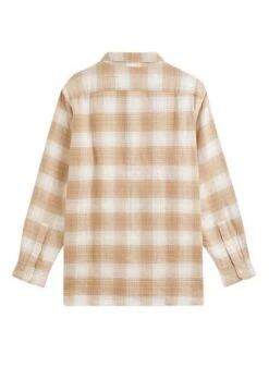 Chemise Levis. Tissu flanelle. ModĂšle Jackson. Fond arrondi. Couleur beige. Printed Ă carreaux beige et blanc. Poche sur la poitrine.