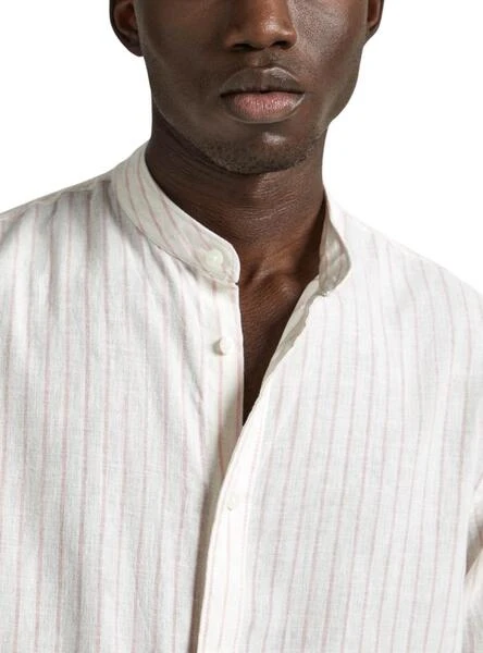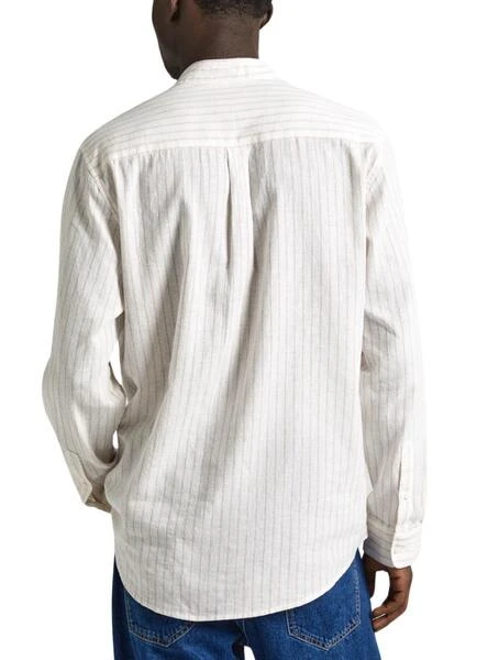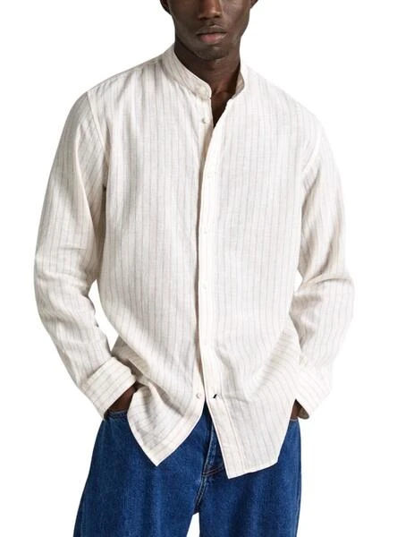 Chemise Pepe Jeans. Modèle Pamphill. Couleur beige. Manches longues. Col mao. Imprimé à rayures. Fermeture boutonnée.