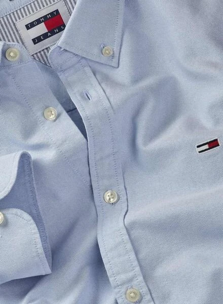 Chemise Tommy Jeans. Couleur bleue. Fermeture avant avec des boutons. Drapeau de la marque brodé sur la poitrine. Col avec des boutons. Coupe réguliÚre. Ourlet arrondi. Manches longues. Passant avec le logo de la marque dans le dos.