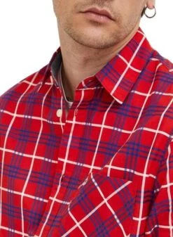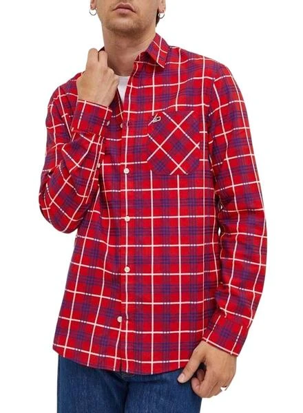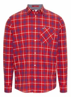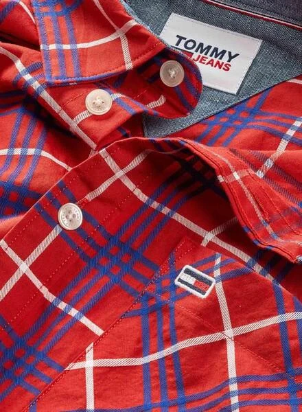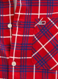 Chemise Tommy Jeans. ModÚle Small Check. Couleur rouge. Fermeture boutonnée. Poche sur la poitrine. Manche longue. Damier Printed. Coupe classique.