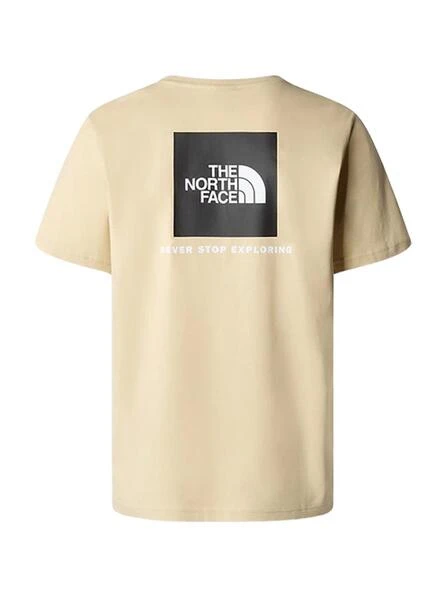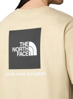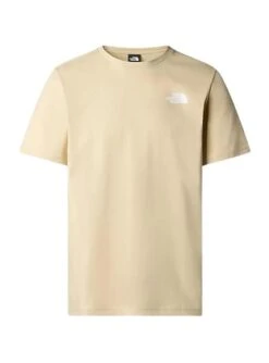 Camiseta The North Face. Modèle Redbox. Couleur beige. Col rond élastique. Manches courtes. Logo sur la poitrine. Imprimé dans le dos. Coupe standard. Le mannequin porte la taille M.