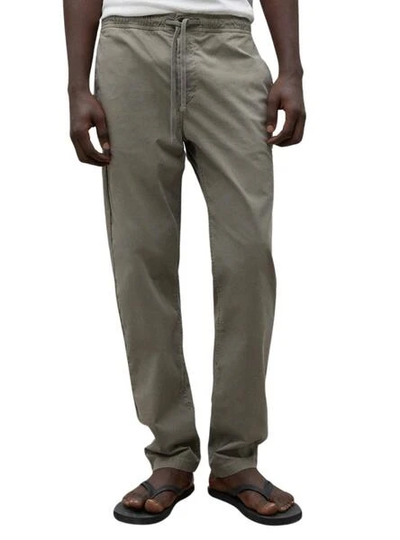 Pantalon Ecoalf. Modèle Ethica. Couleur vert clair. Coupe regular. Taille moyenne. Fermeture avec cordon. Taille élastique. Poches latérales. Fermeture éclair et bouton. Végétalien.