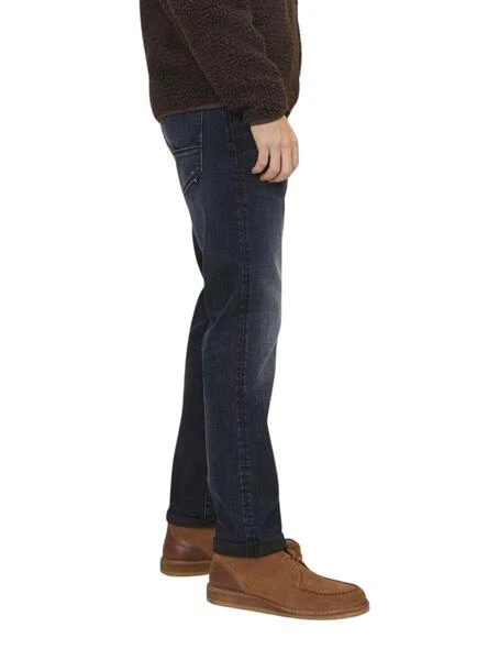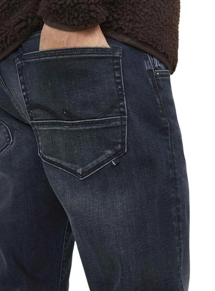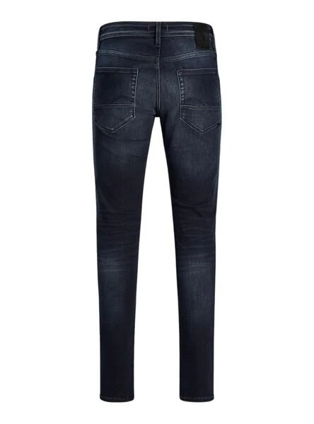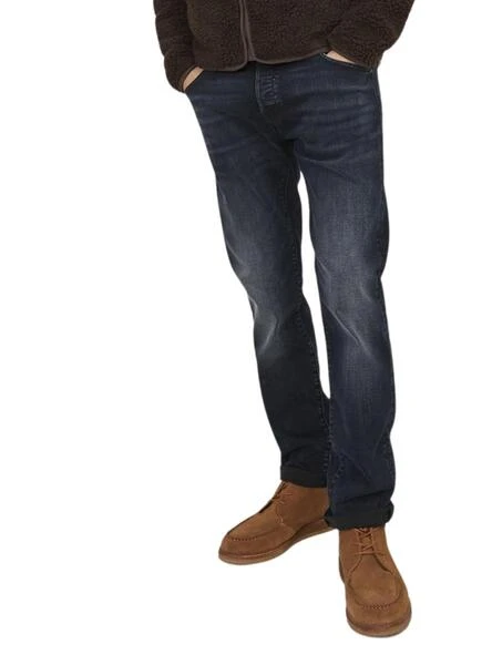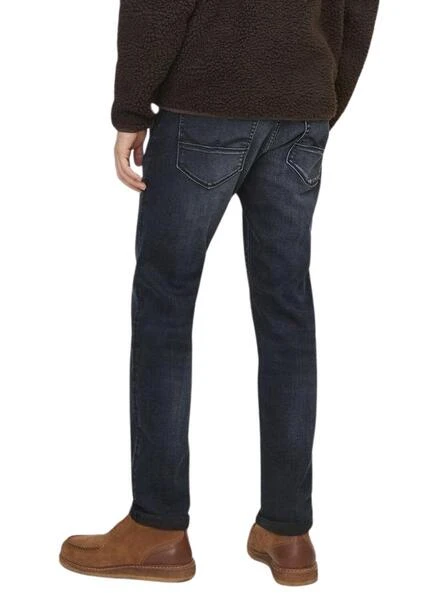 Retournez-moi seulement la traduction en français de ceci : Pantalon en jean Jack and Jones. Modèle Fox. Couleur marine. 5 poches. Patch de la marque à l’arrière. Braguette à boutons. Taille basse. Coupe slim.