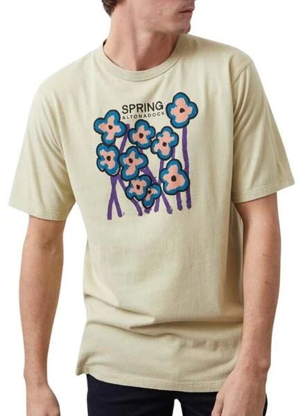 T-shirt Altonadock. Couleur verte. Col rond. Manches courtes. Coupe réguliÚre. Imprimé floral sur le devant.