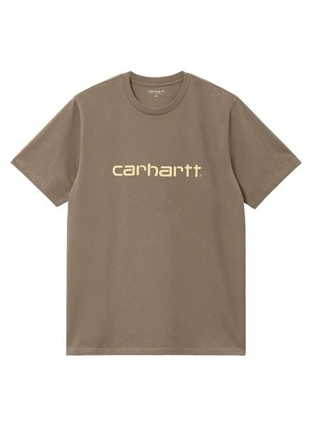 Camiseta Carhartt. Couleur marron. Marque imprimée sur la poitrine en jaune. Encolure ronde. Manches courtes. Coupe ample.