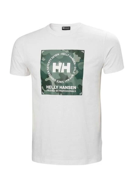 T-shirt Helly Hansen. Modèle Core. Couleur blanche. Col rond. Manches courtes. Coupe régulière. Image imprimée sur la poitrine avec logo. Détails en vert.