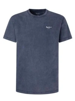 T-shirt Pepe Jeans. Modèle Jacko. Couleur marine. Manches courtes. Col rond. Logo de la marque sur la poitrine. Coupe régulière.