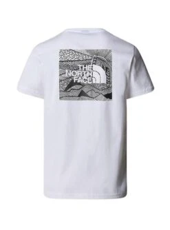 Camiseta The North Face. Modèle Redbox Celebration. Pour homme. Couleur blanche. Col rond élastique. Manches courtes. Le modèle porte la taille M. Motif original dans le dos.