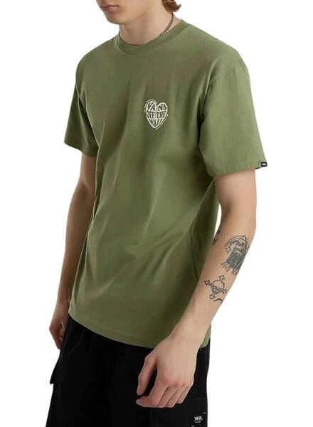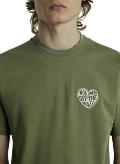 Maillot Vans. ModÚle No players. Couleur verte. Col rond. Manches courtes. Coupe réguliÚre. Logo imprimé. Coeur imprimé dans le dos. Détails en beige.