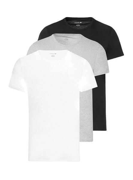 Pack 3 T-Shirt Lacoste. ModÚle salon. En blanc, noir et gris. Col rond. Manche courte. Bases. Slim fit. Crocodile brodé sur le bas. extrémités rainurées.