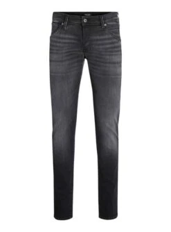 Pantalon jean Jack & Jones. Modèle Glenn Fox. Couleur gris. Coupez le slim. Fermeture boutonnée. Tissu en coton et élasthanne. low rise. Serré aux genoux et aux poignets.