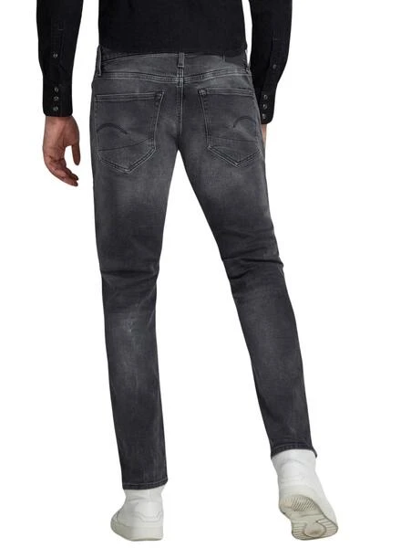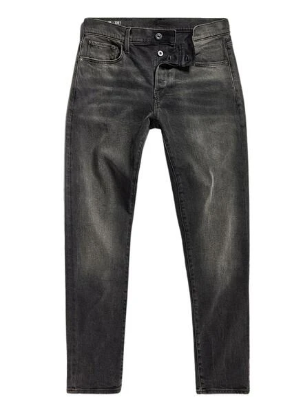 Pantalon Jeans G-Star. Modèle 3301. Couleur noir. Cinq poches. Tissu élastique. Slim. Fermeture boutonnée. Détails usés. Etiquette en cuir cousue.