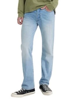 Pantalon Jeans Levi’s. Modèle 501 Original Laissez-le arriver. Couleur bleu clair. Détail effet usé. Modèle 5 poches. Jambe droite. Coupe régulière de la taille à la cuisse. Braguette boutonnée. Fabriqué en denim doux et confortable.