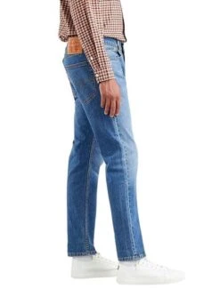 Pantalon jean Levis. Modèle 502 Taper Hiballe. Couleur bleu. Coupe standard. mid rise. Fermeture boutonnée et zippée. 5 poches. Jambe étroite. Tissu élastique.