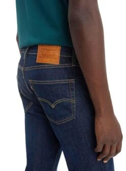 Pantalon Jeans Levis. Modèle 511. Couleur bleu foncé. Coupez l’ajustement slim. Etiquette Levis à la taille. 5 Poche. Fermeture boutonnée et zippée. Tissu mélangé en coton et élasthanne. Le mannequin porte la taille 3232.