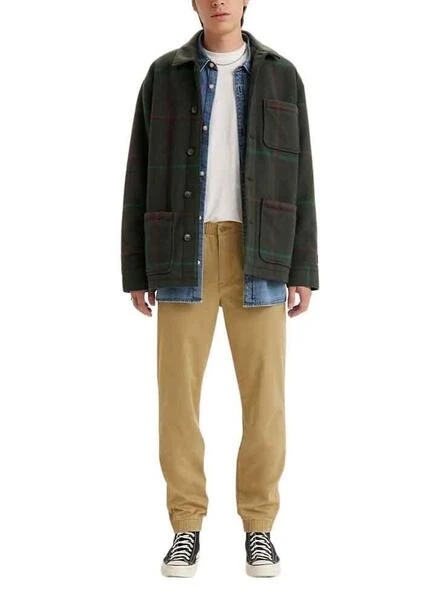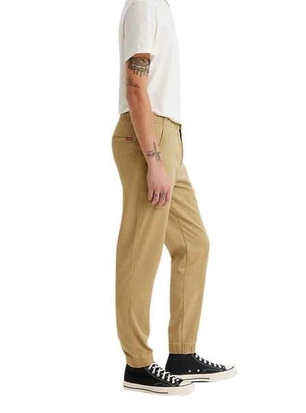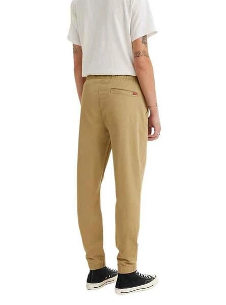 Pantalon Levis. ModÚle Jogger. Couleur beige. ModÚle chino. Taille et ourlet élastiqués. Cordon réglable. Coupe slim. CÎté Poches. Logo de la marque au dos.