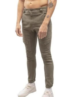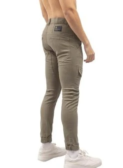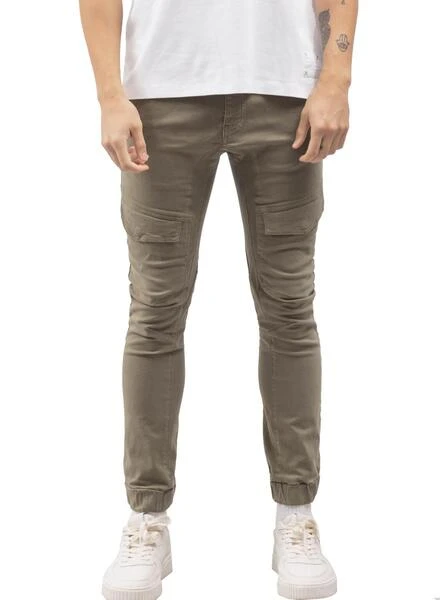 Pantalon Klout. ModÚle de cargaison. Couleur kaki. Fermeture bouton et zip. Six poches. Poignées avec élastique. Passants de ceinture pour ceinture. Tissu en coton extensible. Logo brodé et patch slogan au dos.