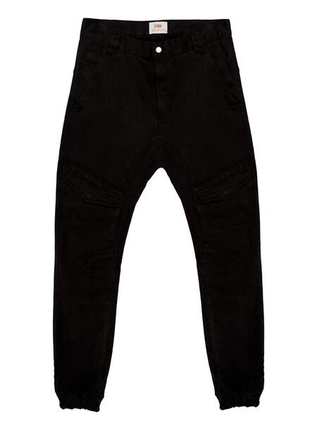 Pantalon Klout. Style cargo. Couleur noire. Fermeture boutonnĂ©e et zippĂ©e. Ăcusson logo au dos. Poches latĂ©rales. Poches dans le dos et sur les jambes. Fond Ă©lastique.