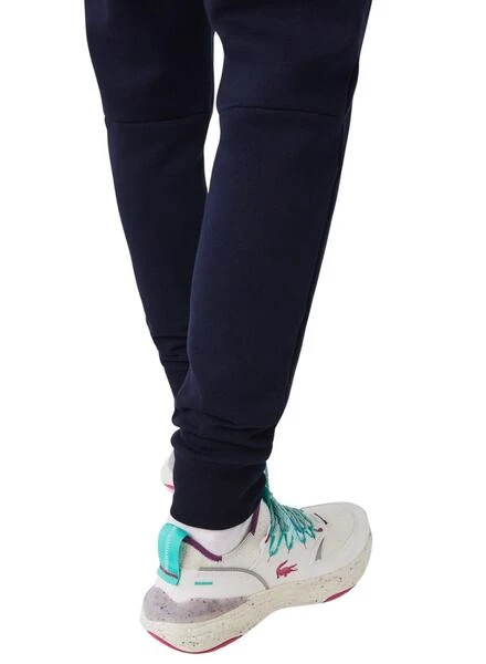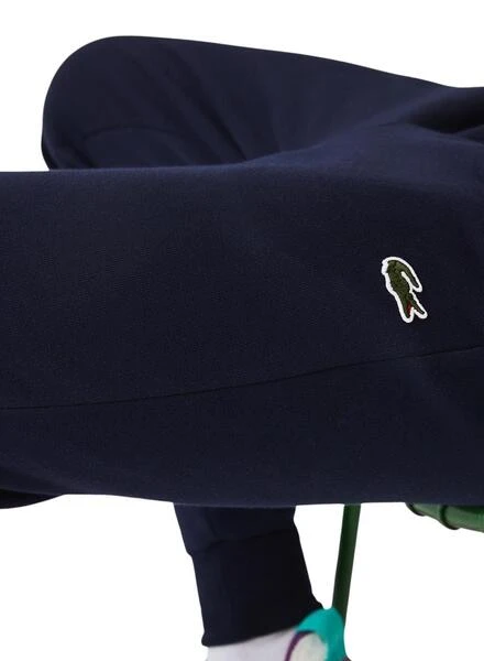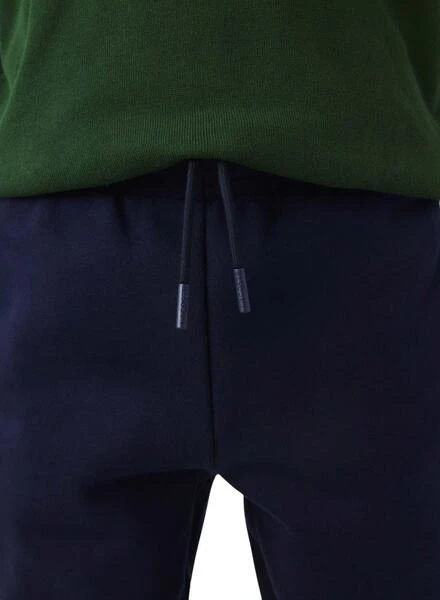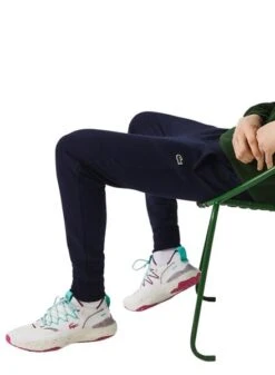 Pantalon Lacoste. Modèle jogging. Couleur marine. Coupez skinny. Logo brodé sur la cuisse. Deux poches latérales. Taille élastique avec cordon de serrage.