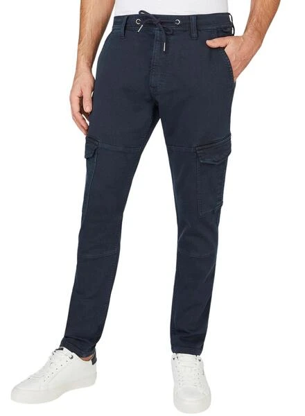 Pantalon Pepe Jeans. Couleur marin. Style jogger. 6 poches. Taille ajustable avec cordon. Slim fit. Tir régulier. Tissu élastique.
