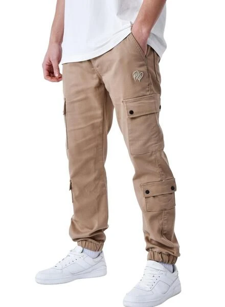 Pantalon Proyect x Paris. Modèle Cargo Coupe. Couleur toastée. Coupe ajustée. Tissu en coton. Poches plaquées. Logo PXP brodé.