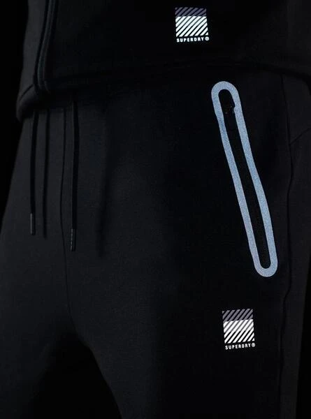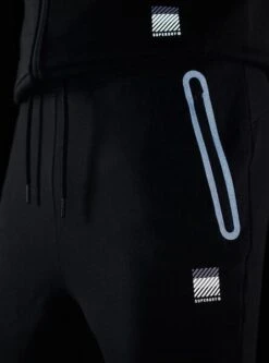 Pantalon Superdry. Modèle Code Tech. Couleur noire. Taille élastique ajustable avec cordons de serrage. Poches latérales avec fermeture éclair. Poignets élastiques.