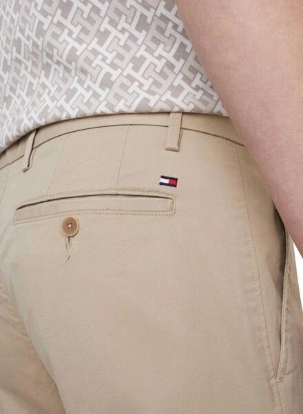 Pantalon chino Tommy Hilfiger. Modèle Core Denton 1985. Couleur Beige. Tissu en coton extensible. Côtés diagonaux du Poche. Poche à l’arrière. Le mannequin porte la taille 3232