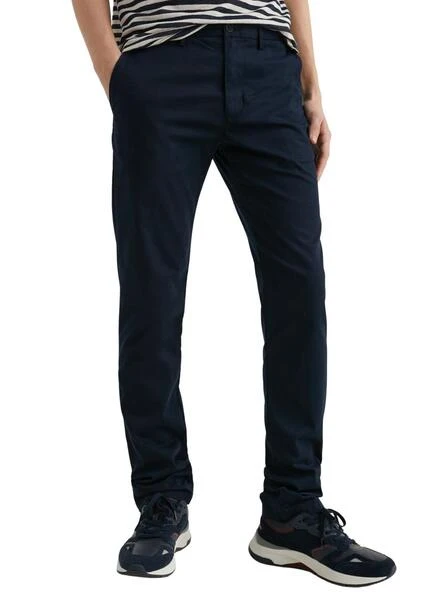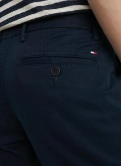Pantalon type chino. Tommy Hilfiger. Modèle Core Denton 1985. Couleur bleu marine. Fermeture boutonnée et zippée. Tissu extensible. Détails distinctifs. Le mannequin porte la taille 3232.