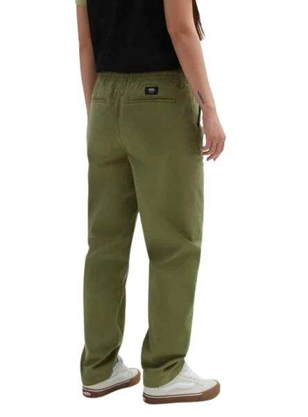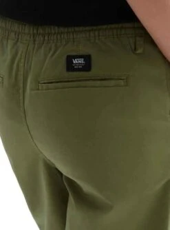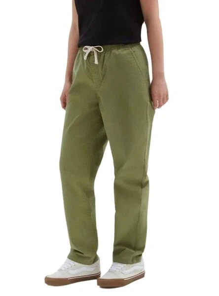 Pantalon Vans. Modèle Range. Ajustement Relaxed. Couleur vert. Jambes droites. Taille élastique réglable avec lacets. Côté Poches. Accroche-logo au dos. Tissu en coton extensible.