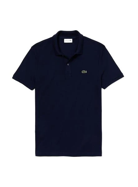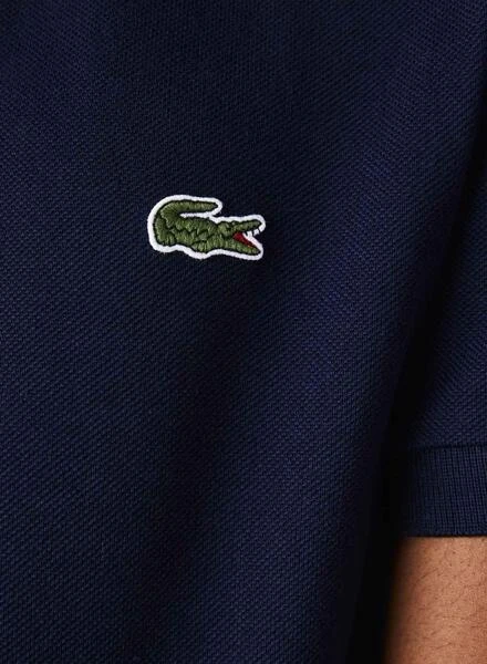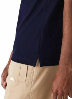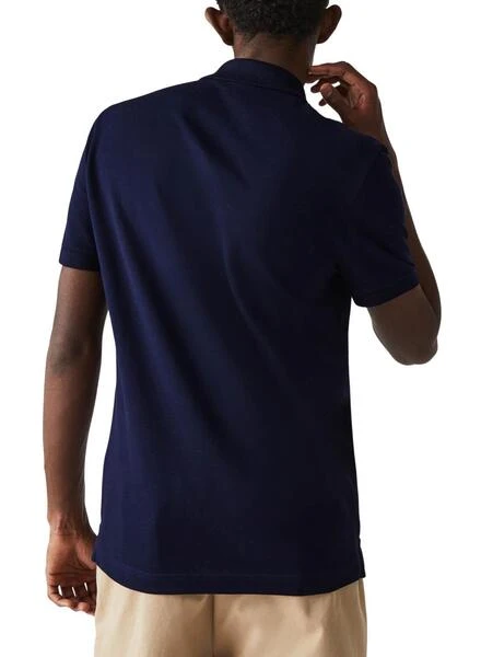 Polo Lacoste. Modèle de base en couleur marine. Col chemise avec revers boutonné. Manche courte. Ajustement régulier. Logo en crocodile brodé sur la poitrine. Petite ouverture latérale.