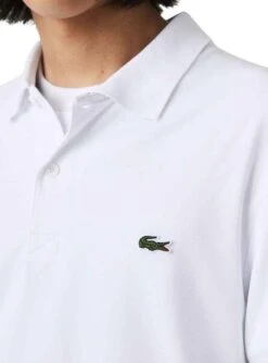 PoloLacoste. ModÚle Bord. Couleur Blanc. Manche court. Col polo avec 2 boutons. Crocodile brodé sur la poitrine. Regular fit.