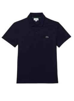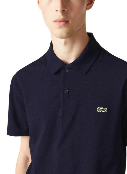 PoloLacoste. Modèle Bord. Couleur marine. col roulé Lacoste Crocodile sur la poitrine. Fermeture avec 2 boutons. Manche court. Regular fit.