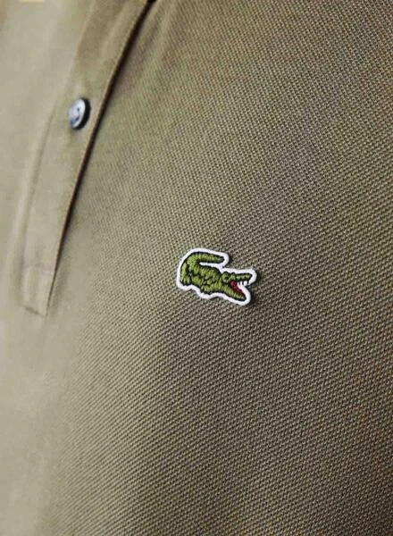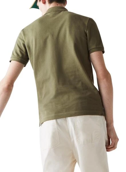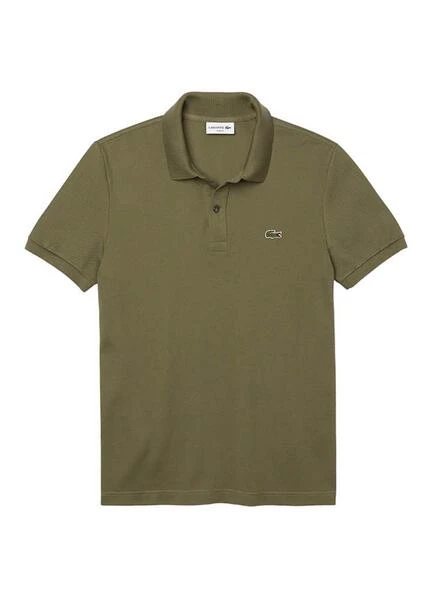 Polo Lacoste Slim Fit. Couleur verte. Tapeta avec 2 boutons. Petit piqué double épaisseur. Col côtelé. Crocodile vert brodé sur la poitrine. Manche courte.