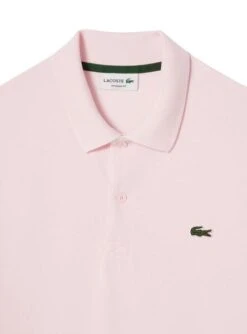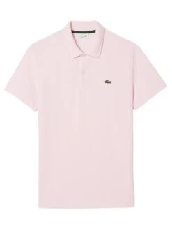 PoloLacoste. ModÚle Stretch. Couleur rose. Manche court. Col avec 2 boutons. Crocodile brodé sur la poitrine. Regular fit.