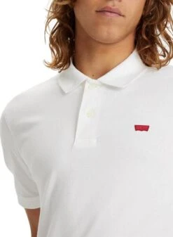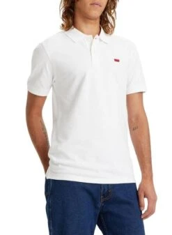 Polo Levis. ModĂšle Housemark. Couleur blanche. Manches courtes. Col polo. Patte Ă 2 boutons. Logo de la marque sur la poitrine. Coupe slim.