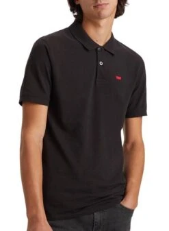 Polo Levis. ModÚle Housemark. Couleur noire. Manches courtes. Col polo avec fermeture à 2 boutons. Logo brodé. Coupe slim.