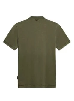 Polo Napapijri. Modèle Elbas. Couleur verte. Logo sur la poitrine. Manches courtes. Détails distinctifs. Le modèle porte la taille L. Col polo. Fermeture boutonnée. Coupe régulière. Col plat. Bordures côtelées.