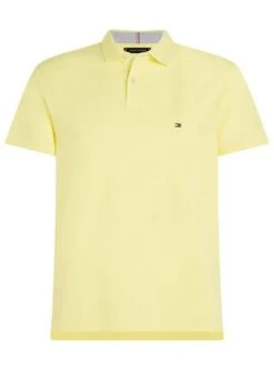 Polo Tommy Hilfiger. ModÚle 1985. Couleur jaune. Col polo avec 2 boutons. Logo de la marque sur la poitrine. Manches courtes. Coupe réguliÚre.