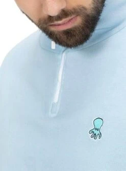 Pull-over El Pulpo. Modèle Perkins Patch Couleurs. Couleur bleue. Col perkins. Avec demi-fermeture éclair. Poignets et ourlet élastiques. Tissu en coton. Croix brodées sur le bas. Coupe régulière.