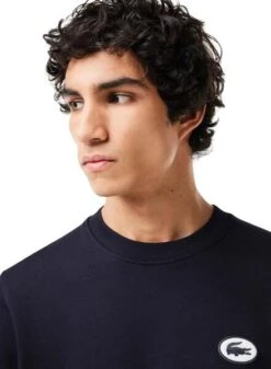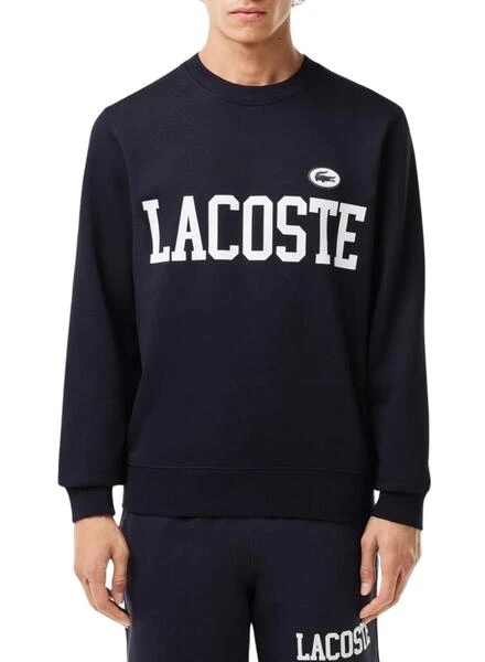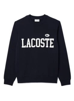 Sweatshirt Lacoste. Modèle SH7420. Couleur bleu marine. Col rond. Logo imprimé en blanc. Extrémités côtelées. Crocodile brodé. Style universitaire. Coupe régulière.